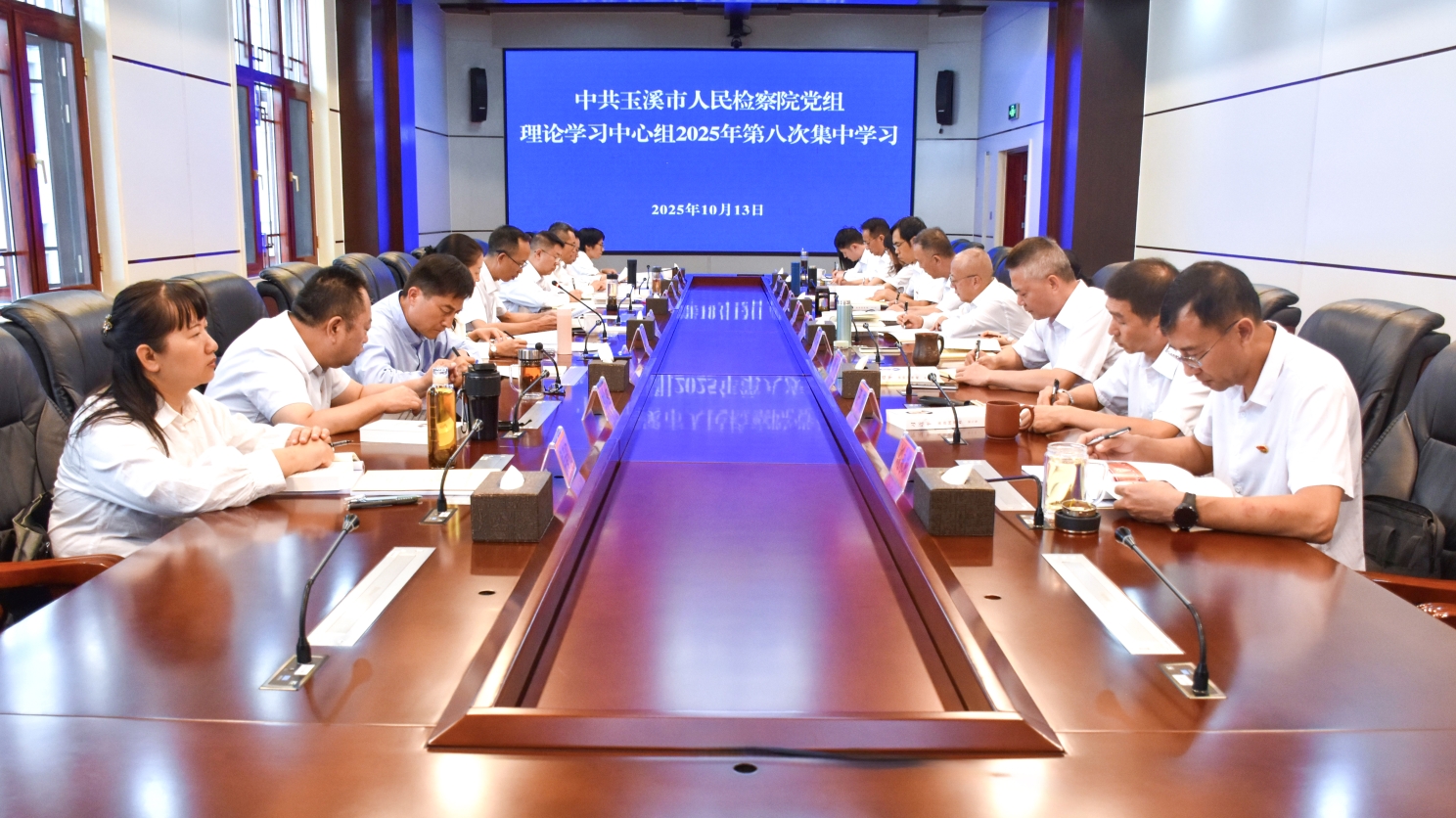 10月13日,市检察院召开党组理论学习中心组2025年第八次集中学习,重点围绕《习近平谈治国理政(第五卷)》进行学习研讨。市检察院党组副书记、副检察长褚绍明主持会议。