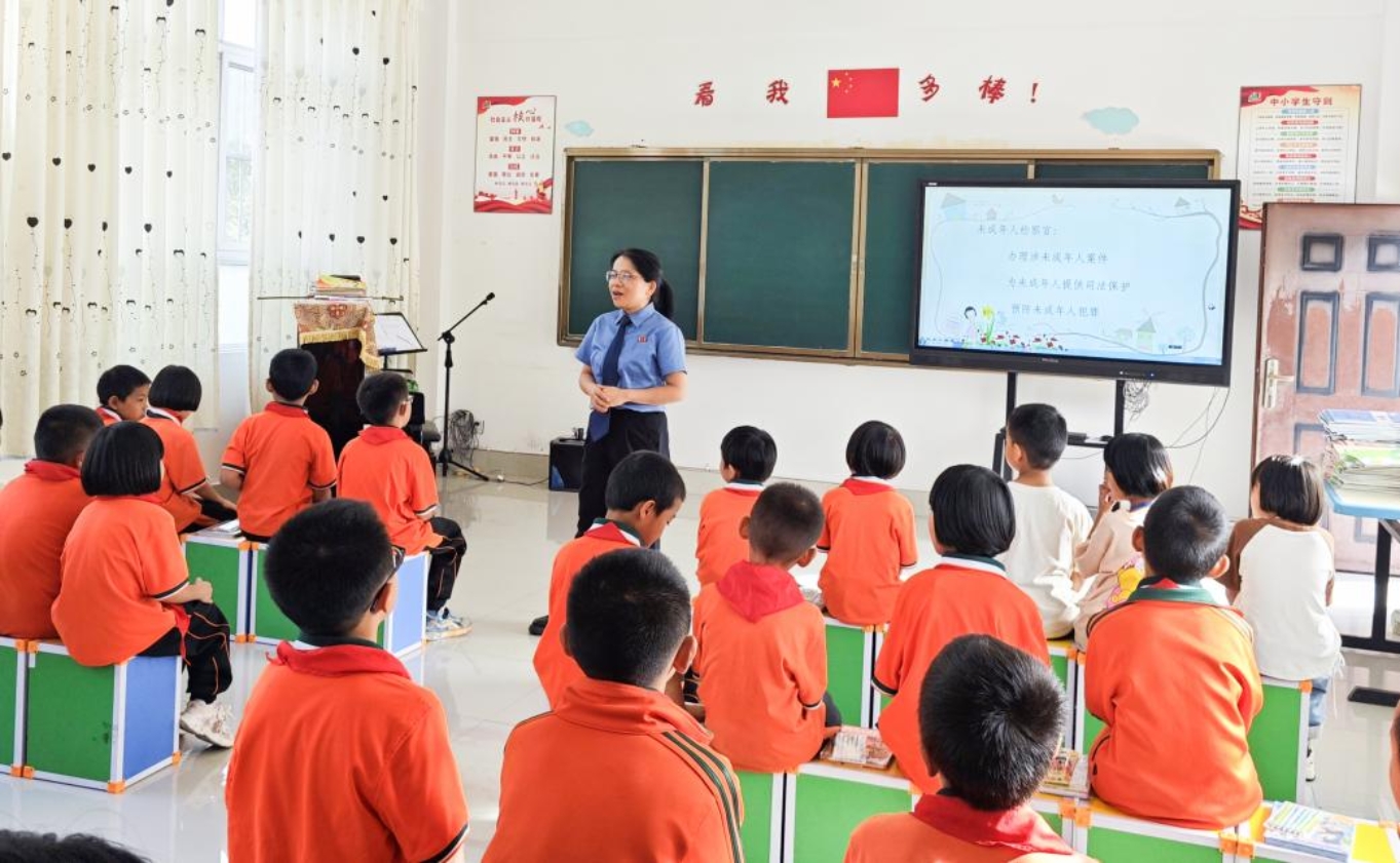 活动聚焦乡村留守儿童“法治意识薄弱、心理关怀不足”的突出问题,结合留守儿童成长环境特点与常见风险场景,未检检察官量身打造“沉浸式法治课堂”,以“校园安全小故事”为切入点,用通俗生动的语言解析校园欺凌、防性侵、网络诈骗等高频风险的法律边界,通过“案例讲解+情景模拟+互动问答”的形式,让孩子们在轻松氛围中掌握自我保护技巧,养成“知法、懂法、守法”的法治意识。
