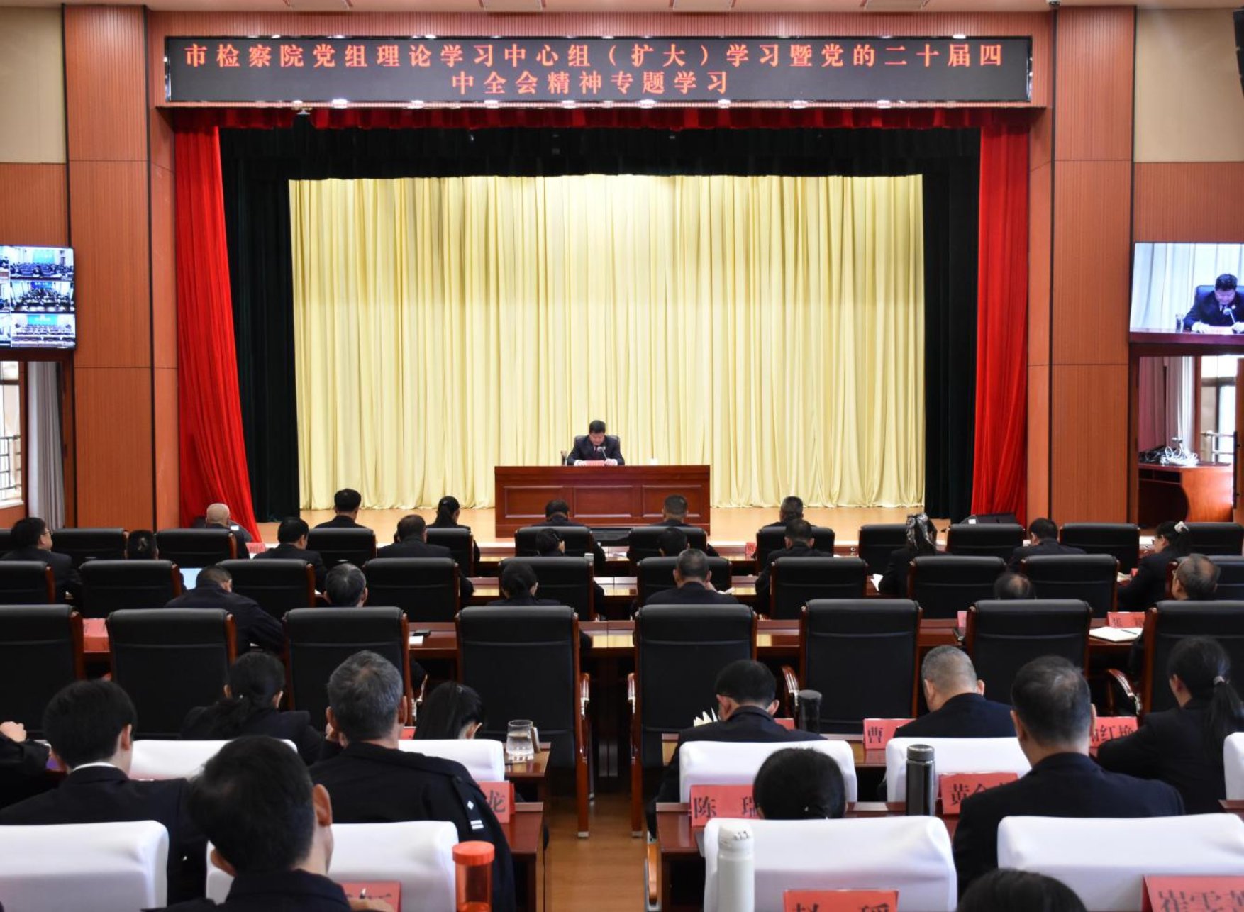 市检察院党组书记、检察长张仕明主持会议,并作专题宣讲报告。宣讲报告深刻认识党的二十届四中全会是我们党在“十四五”规划收官之年、“十五五”规划谋划之年召开的一次十分重要的会议,具有里程碑式的重大意义。要深入学习领会《中共中央关于制定国民经济和社会发展第十五个五年规划的建议》和习近平总书记关于《建议》的说明,深刻领悟习近平总书记重要讲话精神,具有很强的政治性、思想性、战略性、指导性,是做好当前和今后一个时期检察工作的根本遵循。要求全市检察机关一体学习贯彻落实党的二十届四中全会精神和习近平总书记考察云南重要讲话精神,贯彻落实好全国大检察官研讨班精神,围绕重点内容组织开展学习宣传工作,形成浓厚学习氛围,确保党中央、省市委和上级检察院的决策部署在玉溪检察机关得到全面贯彻。
