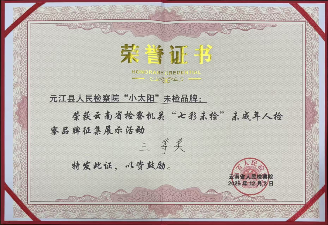 近日,云南省人民检察院通报,元江县检察院“小太阳”未检品牌获云南省检察机关“七彩未检”未成年人检察品牌征集展示活动“三等奖”。